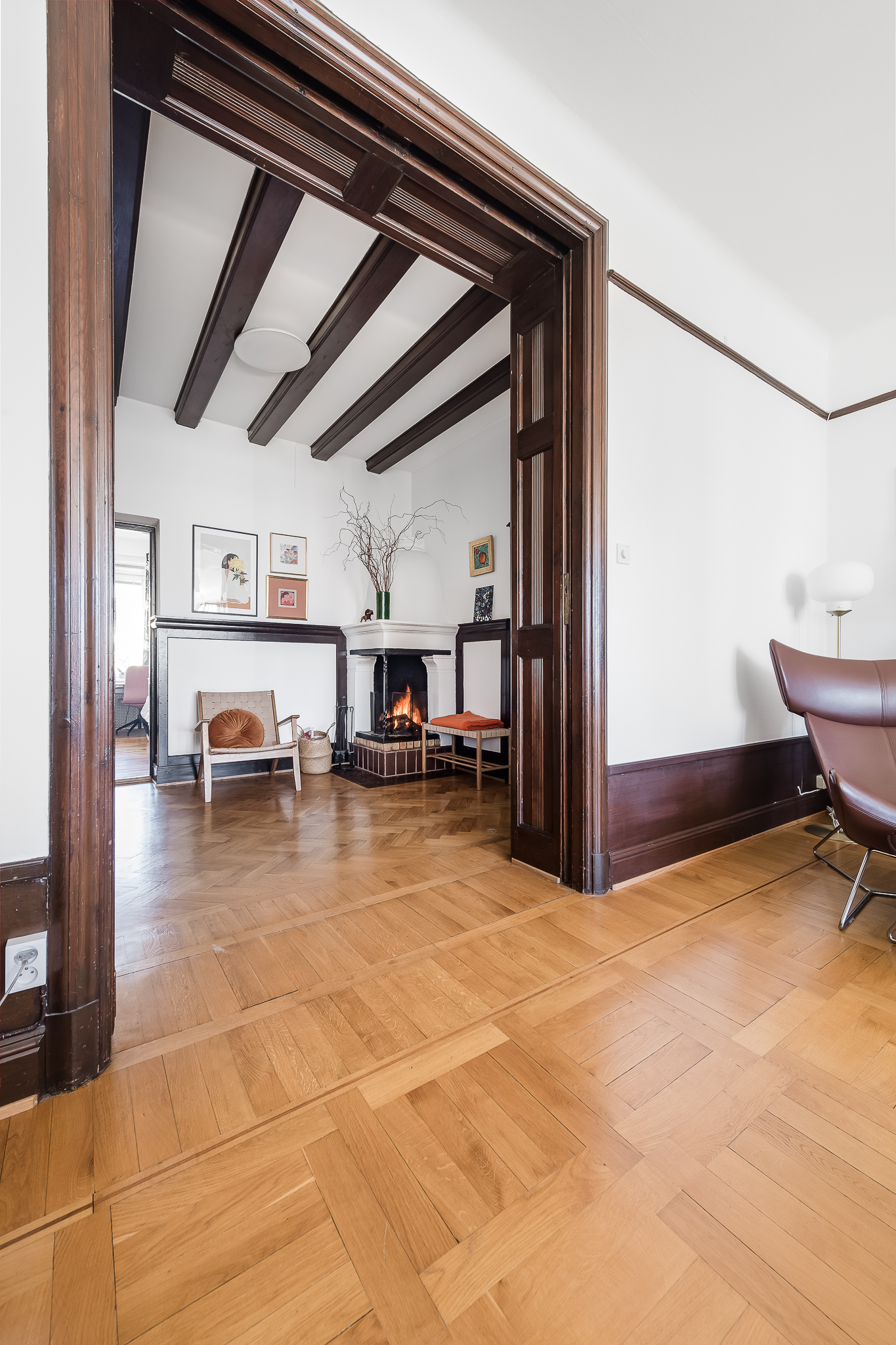 Magnifik 4,5:a om 155 kvm med mycket eftersökt läge i hjärtat av Vasastan. Brf som äger marken. Utmärkt planlösning med upp till 4 möjliga sovrum och härliga sällskapsytor. Sekelskifte i vackert utförande attraktivt belägen i Vasastan med obeskrivligt läcker utsikt över Vasastans takåsar och skyline. Våningen har en utmärkt genomgående planlösning med mycket ljus, fantastiska 20-tals attribut, fungerande eldstad, ljuvlig balkong och en härlig rymd. HALL Vackra pardörrar välkomnar till en suverän möblerbar hall med fungerande öppen spis. Intill hallen finns en tambur med plats för avhängning av ytterkläder. I taket pryds vackra takbjälkar i perfekt harmoni som tillsammans med eldstaden adderar den där obeskrivliga genuina värmen. Hallen har en skön loungekänsla och kan med hjälp av eleganta tidstypiska skjutdörrar avskärmas från sällskapsrummet. GÄST WC Separat gäst WC intill entré i bra skick. DUSCHRUM med Bastu Rymligt duschrum med intilliggande bastu. Här finns duschhörna, WC, handdukstork, tvättmaskin, handfat med kommod samt komfortvärme. KÖK med unikt tornrum. Rymligt kök från Ballingslöv med goda arbetsytor och gott om förvaringsmöjligheter. Komplett maskinell utrustning. Tornrum , nyttjas idag som kallskafferi, som med fördel kan inredas till en lyxig vinkällare. MATSAL Intill köket finns en rymlig matsal med generöst fönsterparti. Plats för många middagsgäster. Rummet kan givetvis inredas som ett ytterligare sovrum för den som är i behov av detta. SOVRUM 1 I fil med köket finns ett bra sovrum med klädkammare. SÄLLSKAPSRUM med sagolikt burspråk Med magisk utsikt över Stockholms magnifika Stadsbibliotek och pampiga Gustav Vasa Kyrka stoltserar detta burspråk i ett spatiöst sällskapsrum. Rummet är ljust, luftigt och lättmöblerat och tillåter större sällskap. Den härliga energin är påtaglig. MASTER BEDROOM Sovrum med plats för dubbelsäng, goda förvaringsmöjligheter samt pardörrar som öppnar upp mot sällskapsrum. SOVRUM 3 Generöst sovrum med plats för dubbelsäng och garderober samt pardörrar som öppnar upp mot sällskapsrum.