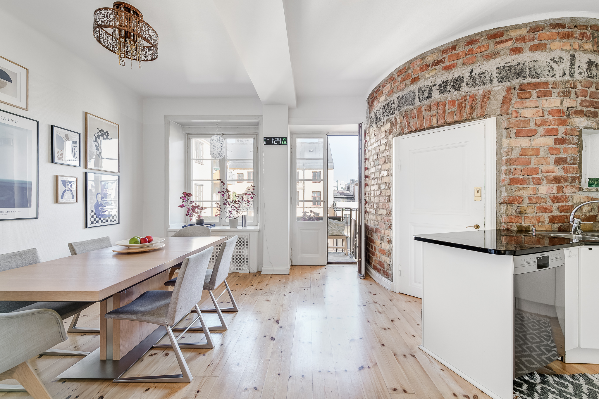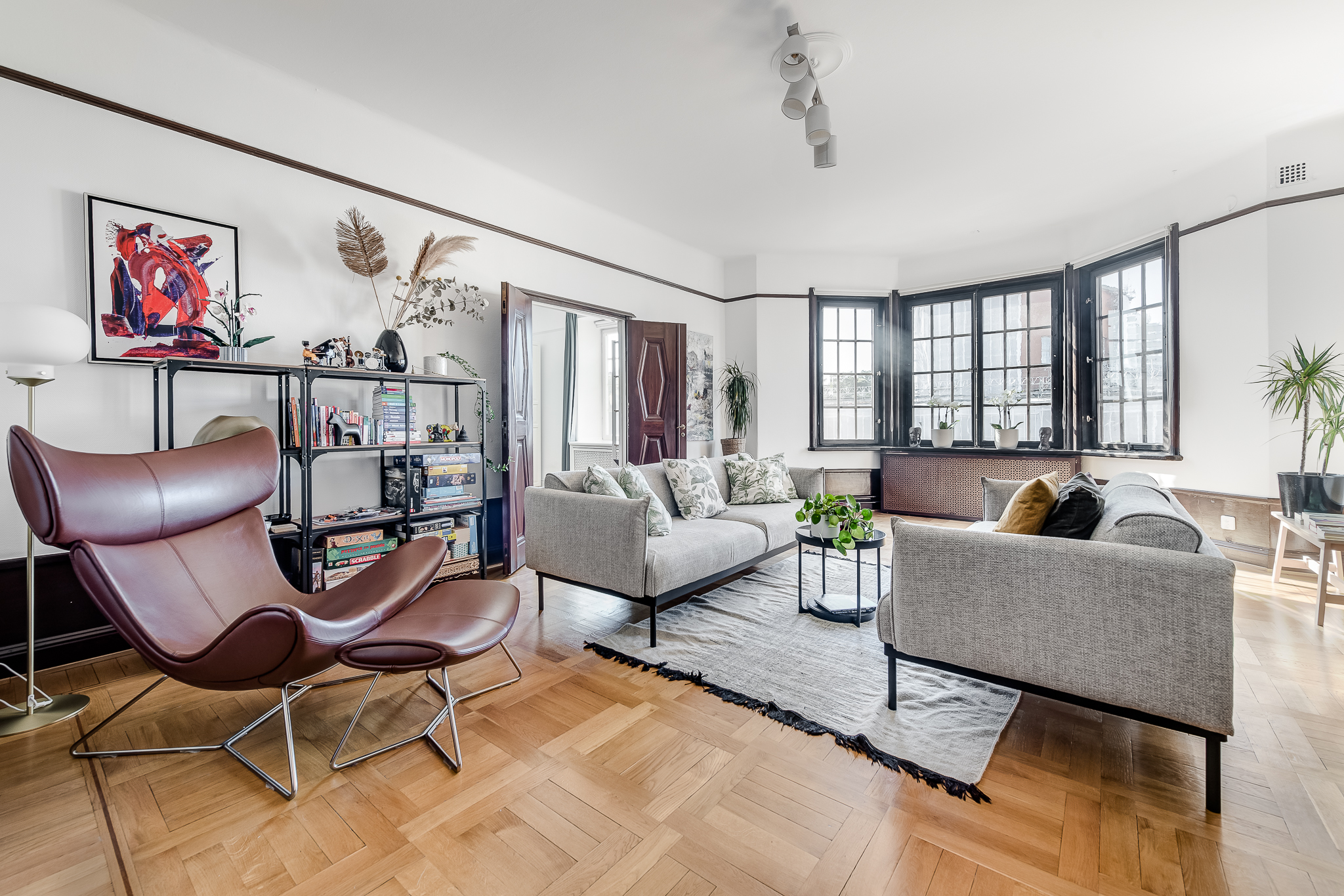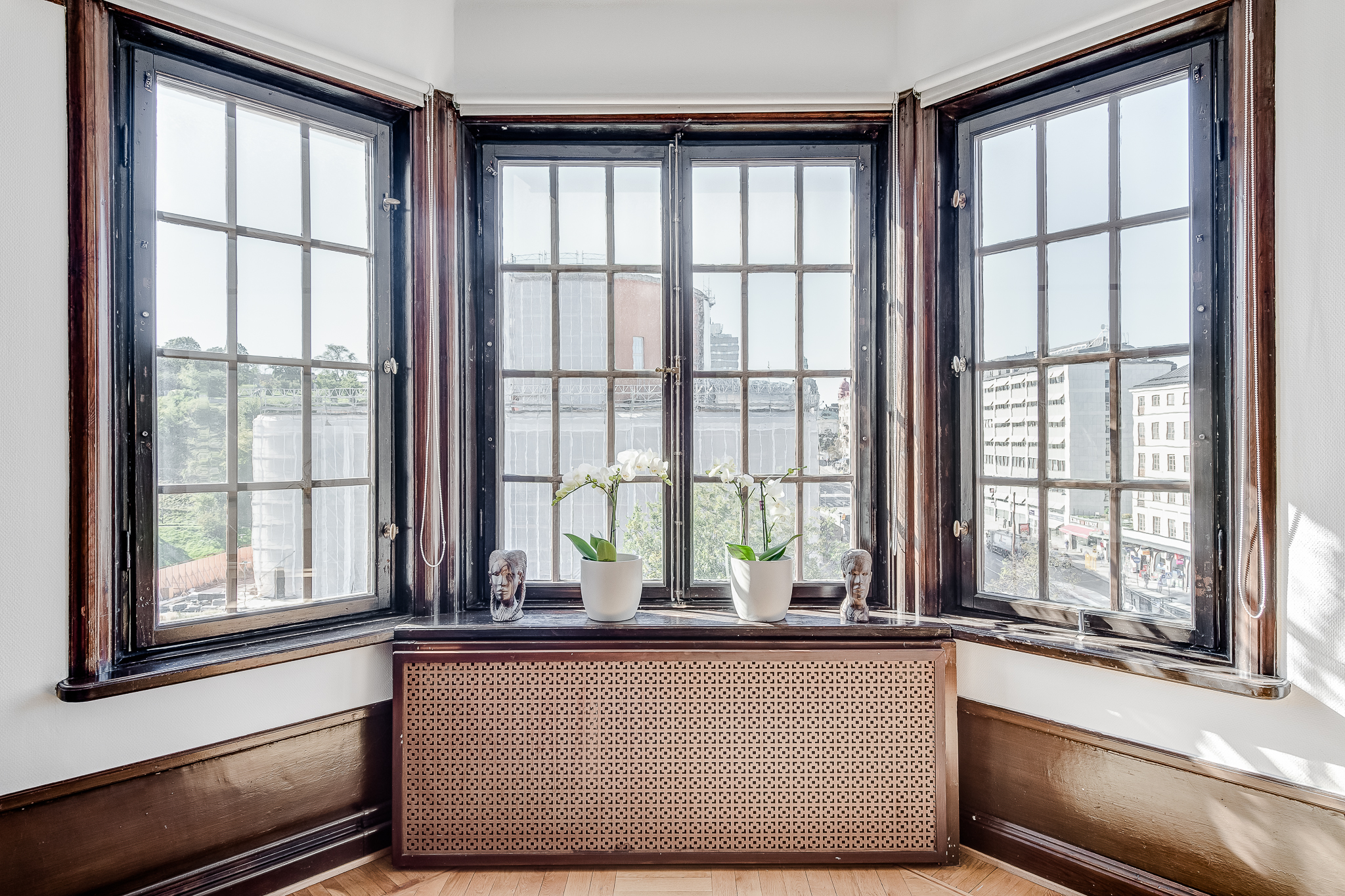 .: Magnifik 4,5:a om 155 kvm med mycket eftersökt läge i hjärtat av Vasastan. Brf som äger marken. Utmärkt planlösning med upp till 4 möjliga sovrum och härliga sällskapsytor. Sekelskifte i vackert utförande attraktivt belägen i Vasastan med obeskrivligt läcker utsikt över Vasastans takåsar och skyline. Våningen har en utmärkt genomgående planlösning med mycket ljus, fantastiska 20-tals attribut, fungerande eldstad, ljuvlig balkong och en härlig rymd. HALL Vackra pardörrar välkomnar till en suverän möblerbar hall med fungerande öppen spis. Intill hallen finns en tambur med plats för avhängning av ytterkläder. I taket pryds vackra takbjälkar i perfekt harmoni som tillsammans med eldstaden adderar den där obeskrivliga genuina värmen. Hallen har en skön loungekänsla och kan med hjälp av eleganta tidstypiska skjutdörrar avskärmas från sällskapsrummet. GÄST WC Separat gäst WC intill entré i bra skick. DUSCHRUM med Bastu Rymligt duschrum med intilliggande bastu. Här finns duschhörna, WC, handdukstork, tvättmaskin, handfat med kommod samt komfortvärme. KÖK med unikt tornrum. Rymligt kök från Ballingslöv med goda arbetsytor och gott om förvaringsmöjligheter. Komplett maskinell utrustning. Tornrum , nyttjas idag som kallskafferi, som med fördel kan inredas till en lyxig vinkällare. MATSAL Intill köket finns en rymlig matsal med generöst fönsterparti. Plats för många middagsgäster. Rummet kan givetvis inredas som ett ytterligare sovrum för den som är i behov av detta. SOVRUM 1 I fil med köket finns ett bra sovrum med klädkammare. SÄLLSKAPSRUM med sagolikt burspråk Med magisk utsikt över Stockholms magnifika Stadsbibliotek och pampiga Gustav Vasa Kyrka stoltserar detta burspråk i ett spatiöst sällskapsrum. Rummet är ljust, luftigt och lättmöblerat och tillåter större sällskap. Den härliga energin är påtaglig. MASTER BEDROOM Sovrum med plats för dubbelsäng, goda förvaringsmöjligheter samt pardörrar som öppnar upp mot sällskapsrum. SOVRUM 3 Generöst sovrum med plats för dubbelsäng och garderober samt pardörrar som öppnar upp mot sällskapsrum.