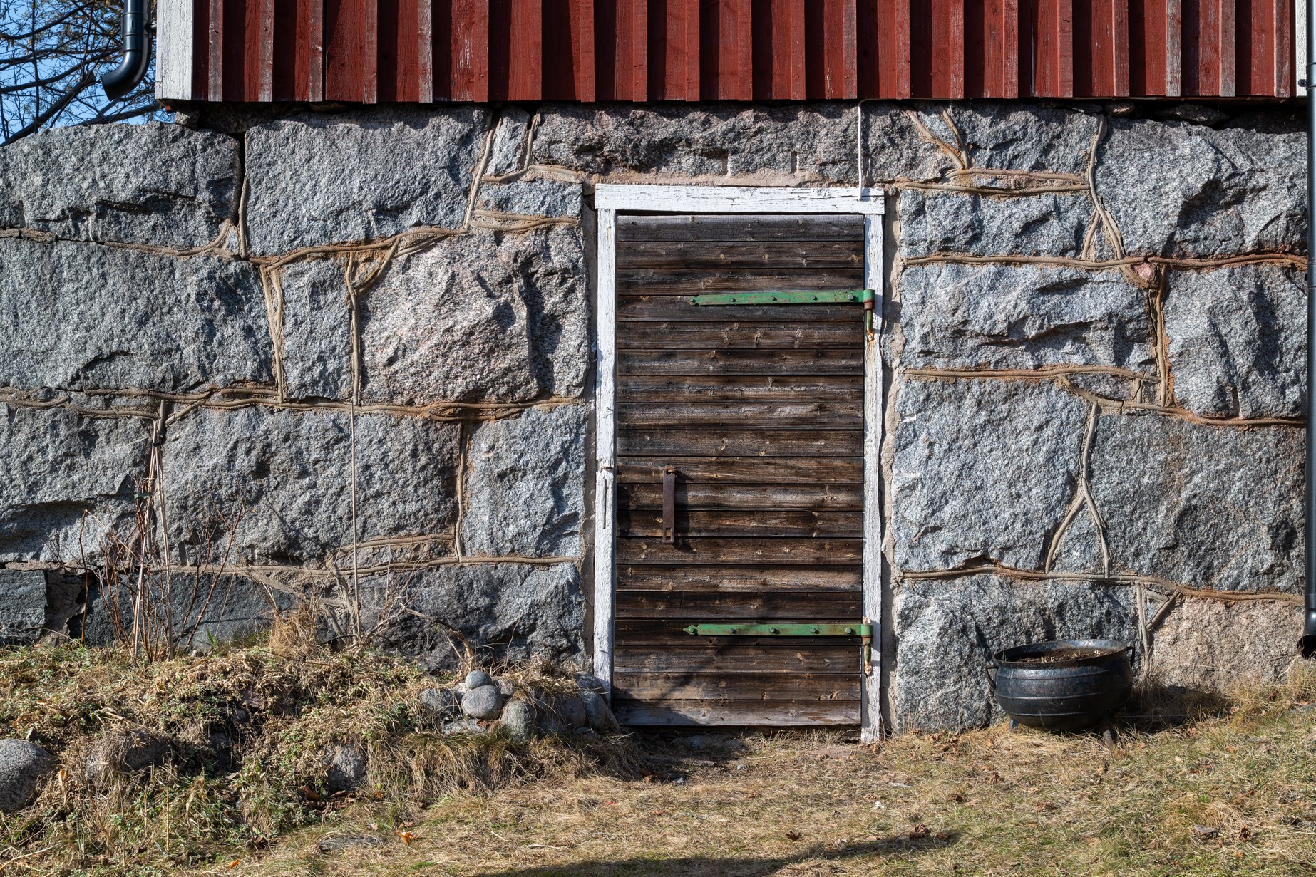 Torpargrund på stenfot. Tillbyggnad med krypgrund.